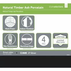 Style Selections Natural Timber 4-Pack Ash 8-in x 48-in Porcelain Wood Look Tiles
