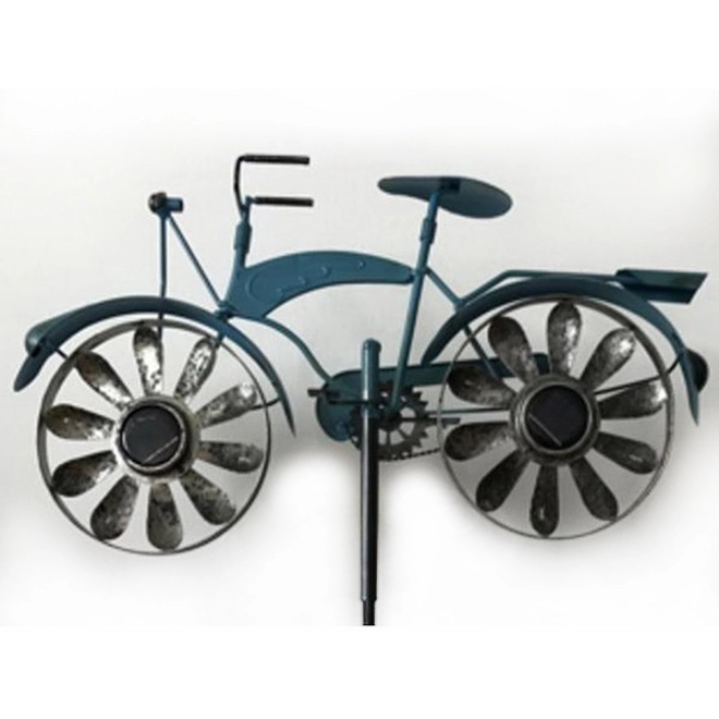 This solar bike shaped spinner is a unique and beautiful exterior decoration. Handcrafted, this ornement will elevate your outdoor space.