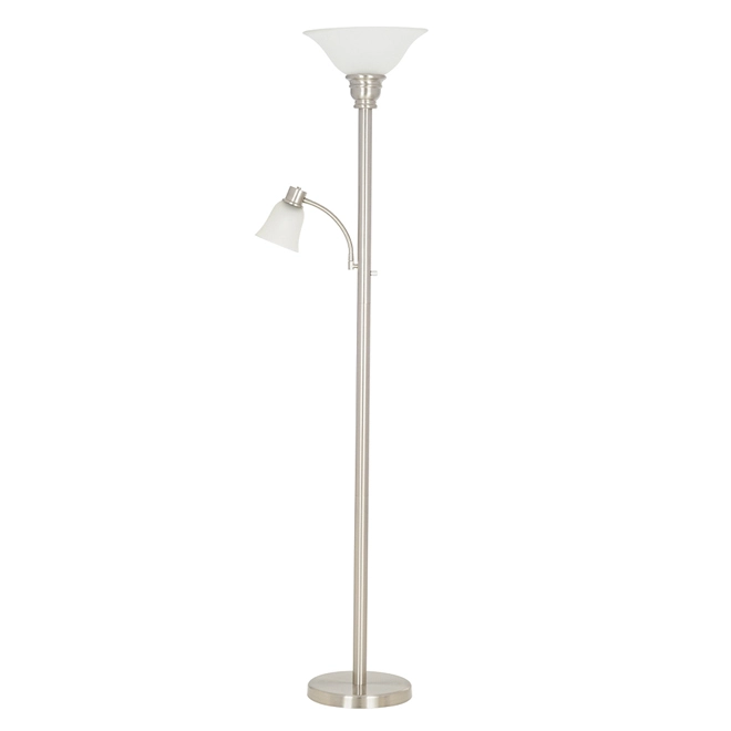This metal torchiere lamp is ideal if you want to get a beautiful directional light, both for your bedroom or your living room. It requires one (1) standard 150 Watt and one (1) 40 watts lightbulb. It features switch rotary settings on the pole. This product is backed by a 1-year warranty.