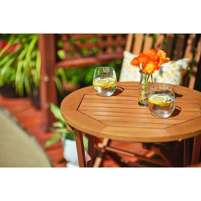 Absolutely love this bistro set! The wood finish is beautiful and the quality is top-notch. Perfect for small outdoor spaces.