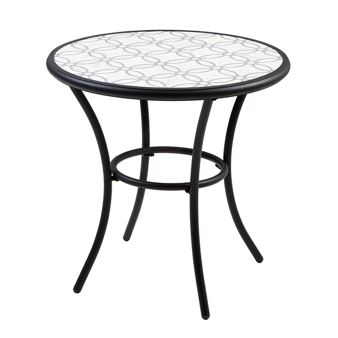 This pretty 28-inch bistro table is designed so you can take full advantage of your outdoor space, where you can organize small parties with friends or simply sip your morning coffee. The curved steel legs give the table a contemporary and elegant look.