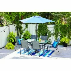 This 7.5-ft. market umbrella by Style Selections provides over 44 square feet of shade and is ideal for any outdoor bistro set and smaller patio setups in need of efficient sun protection. The rust-resistant steel frame ensures long-lasting use and withstands outdoor elements, while a UV protected polyester fabric canopy with integrated canopy tie conveniently secures the umbreall when closed. Convenient hook and loop tabs on the end of each rib make hanging additional lights or decorations simple and easy.